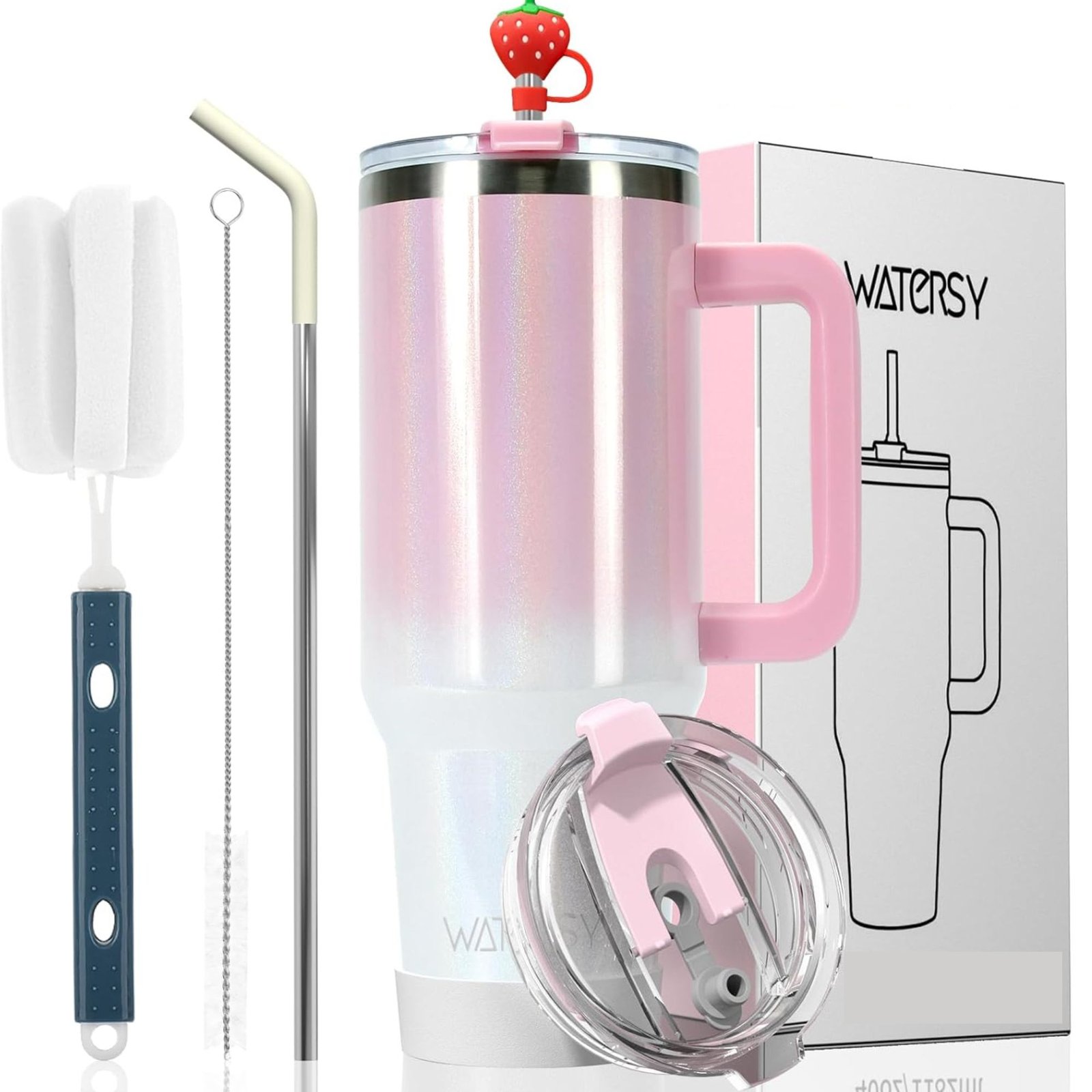 - A garrafa de água pode ser facilmente colocada no porta-copos do carro, e o design de uma alça permite que você tire facilmente o copo e beba e carregue suas bebidas favoritas aonde quer que vá. O design de abertura ampla torna a limpeza mais conveniente e fácil