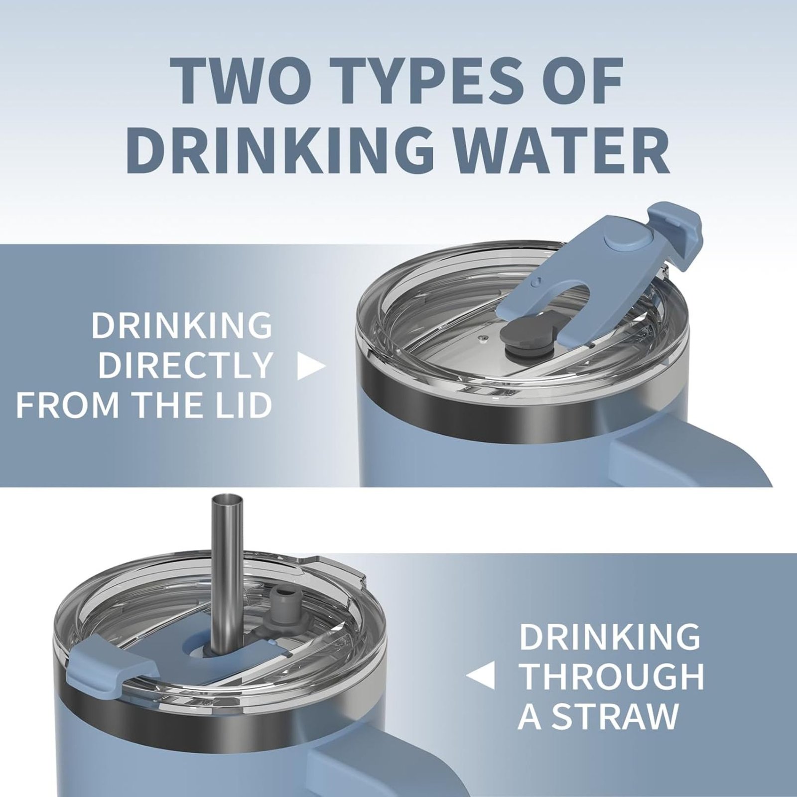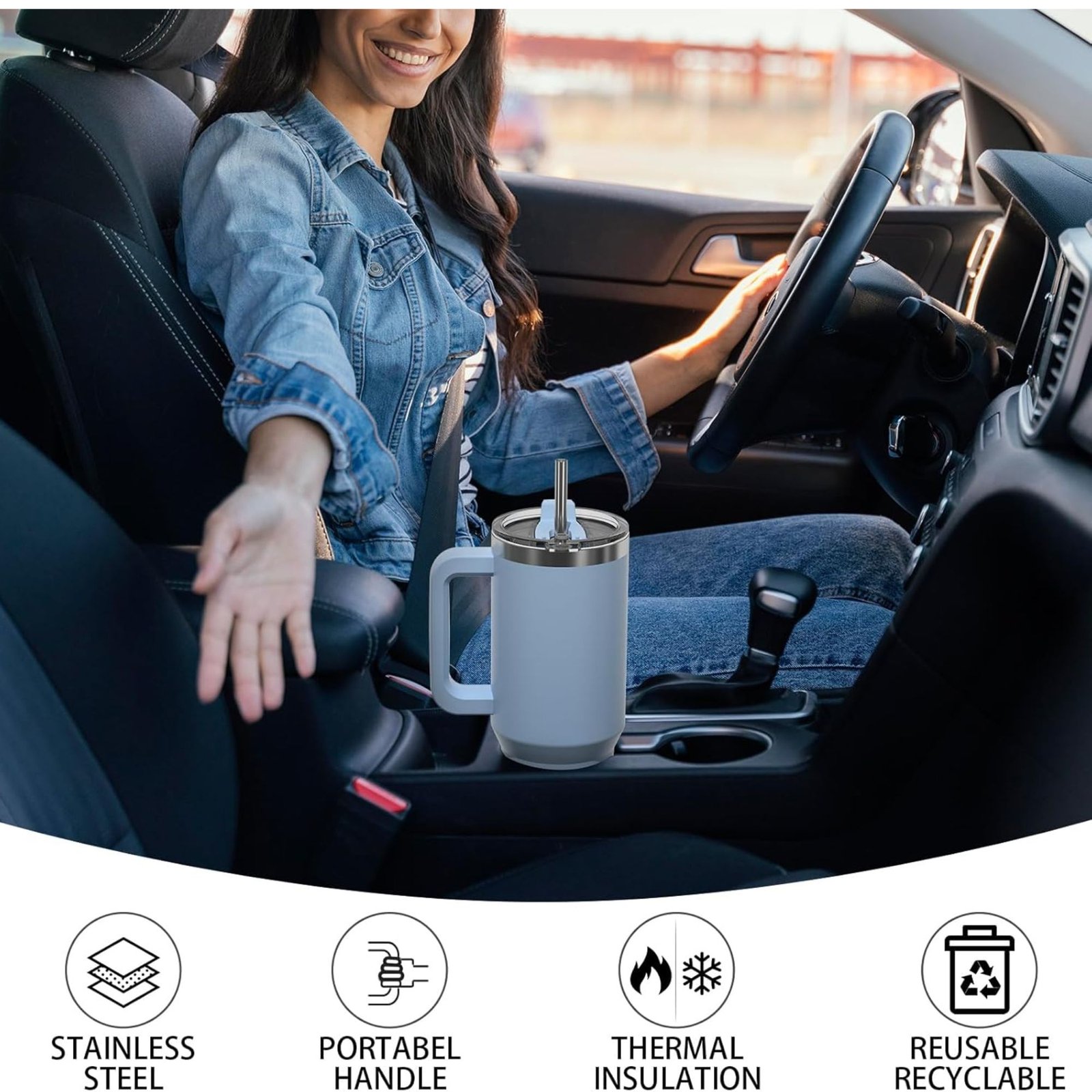 - O copo de água pode ser facilmente colocada no porta-copos do carro, e o design de uma alça permite que você tire facilmente o copo e beba e carregue suas bebidas favoritas aonde quer que vá. O design de abertura ampla torna a limpeza mais conveniente e fácil