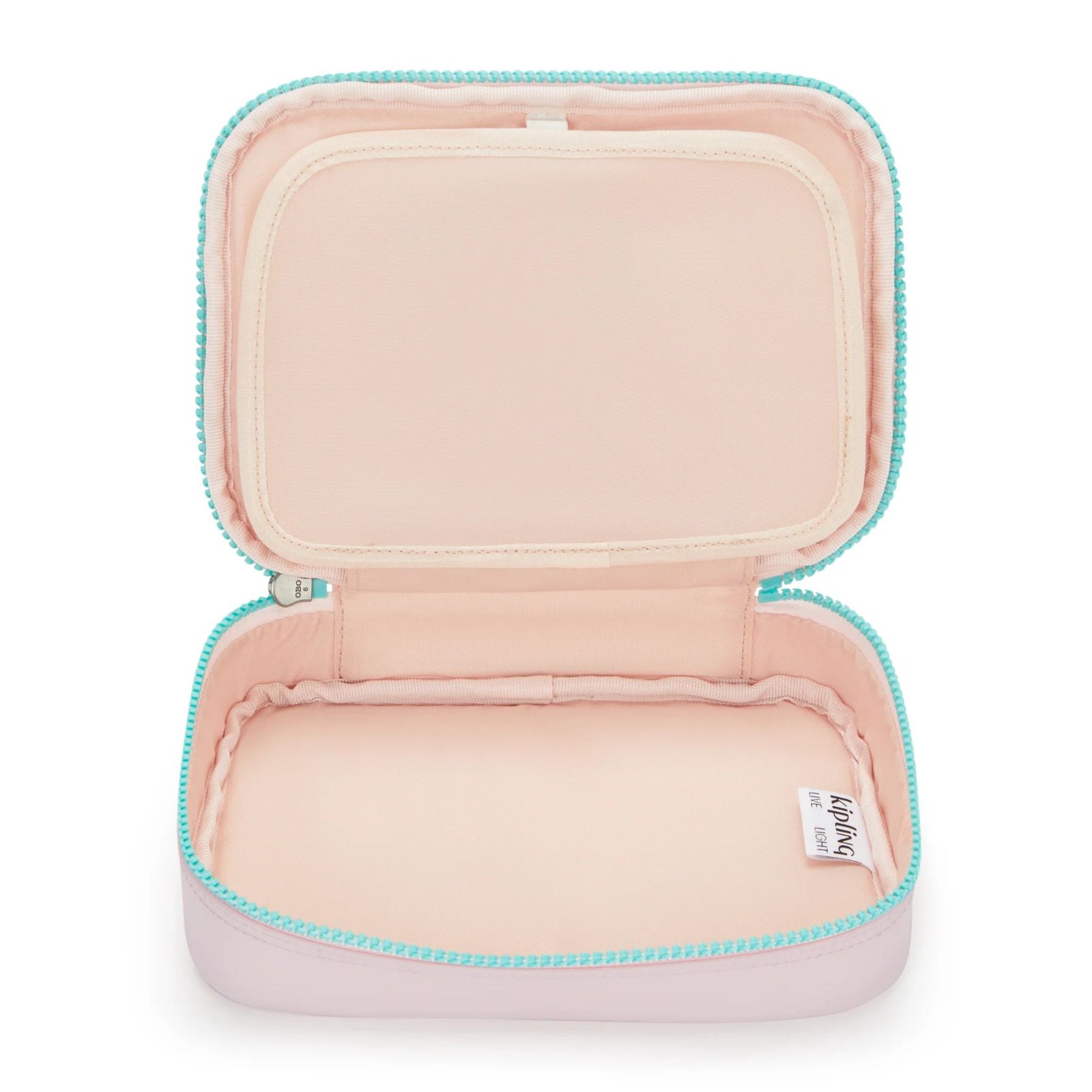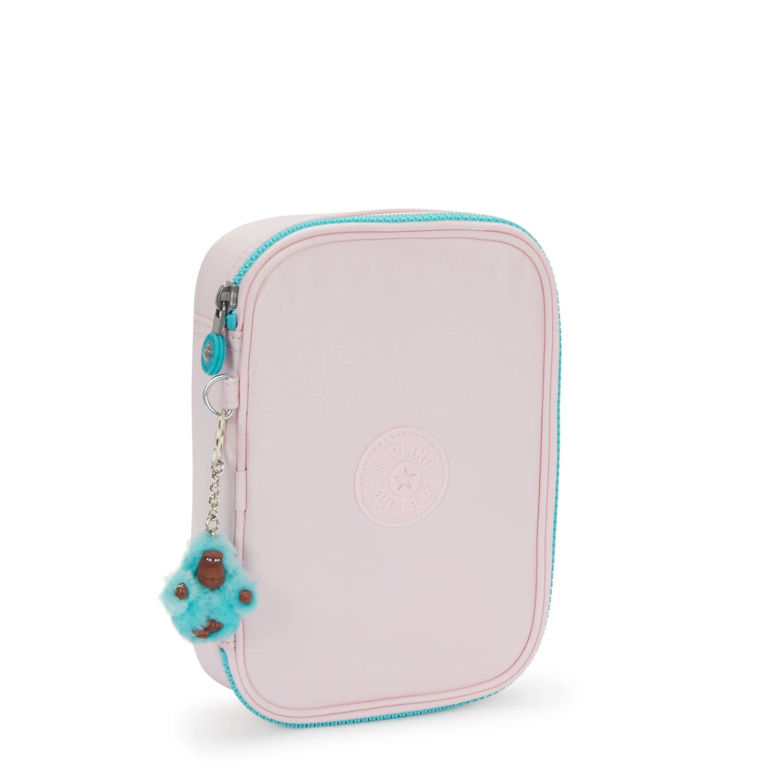 Kipling 100 Pens é um estojo quadrado, muito espaçoso e que possui duas divisórias, separadas por uma aba. Em uma das divisórias, possui elásticos para organizar lápis, canetas ou pincéis, e a outra divisória é ótima para guardar objetos maiores.