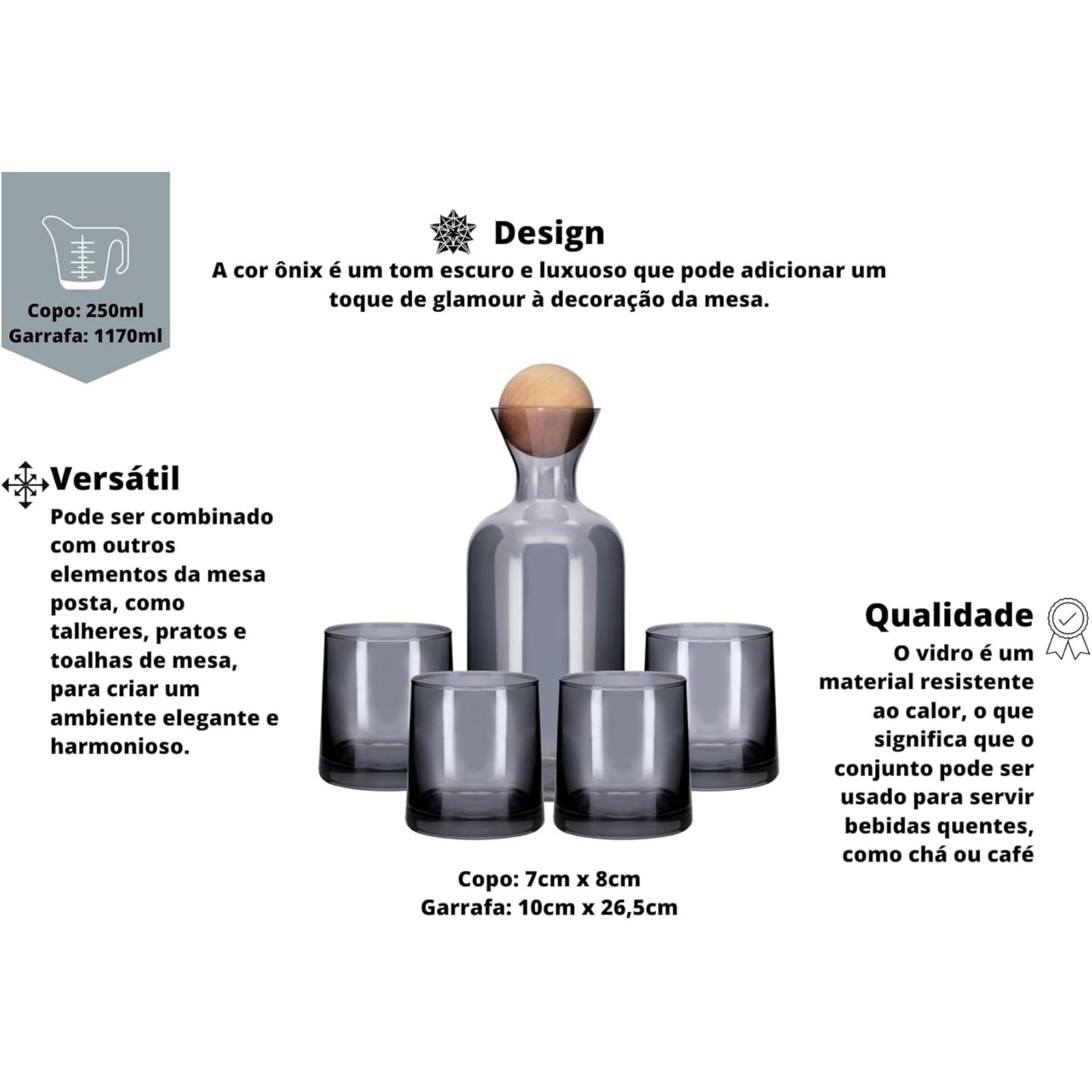 - Jogo de garrafa com tampa e 4 copos, ideal para servir bebidas