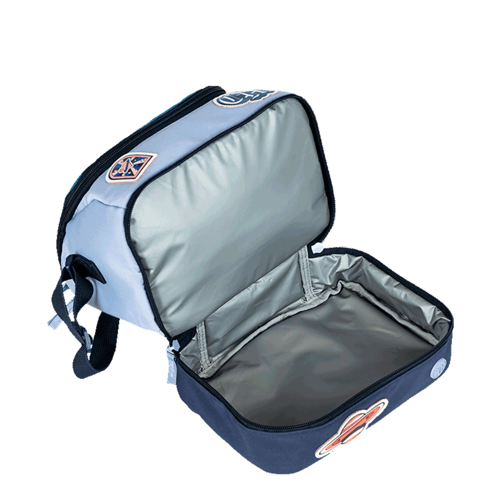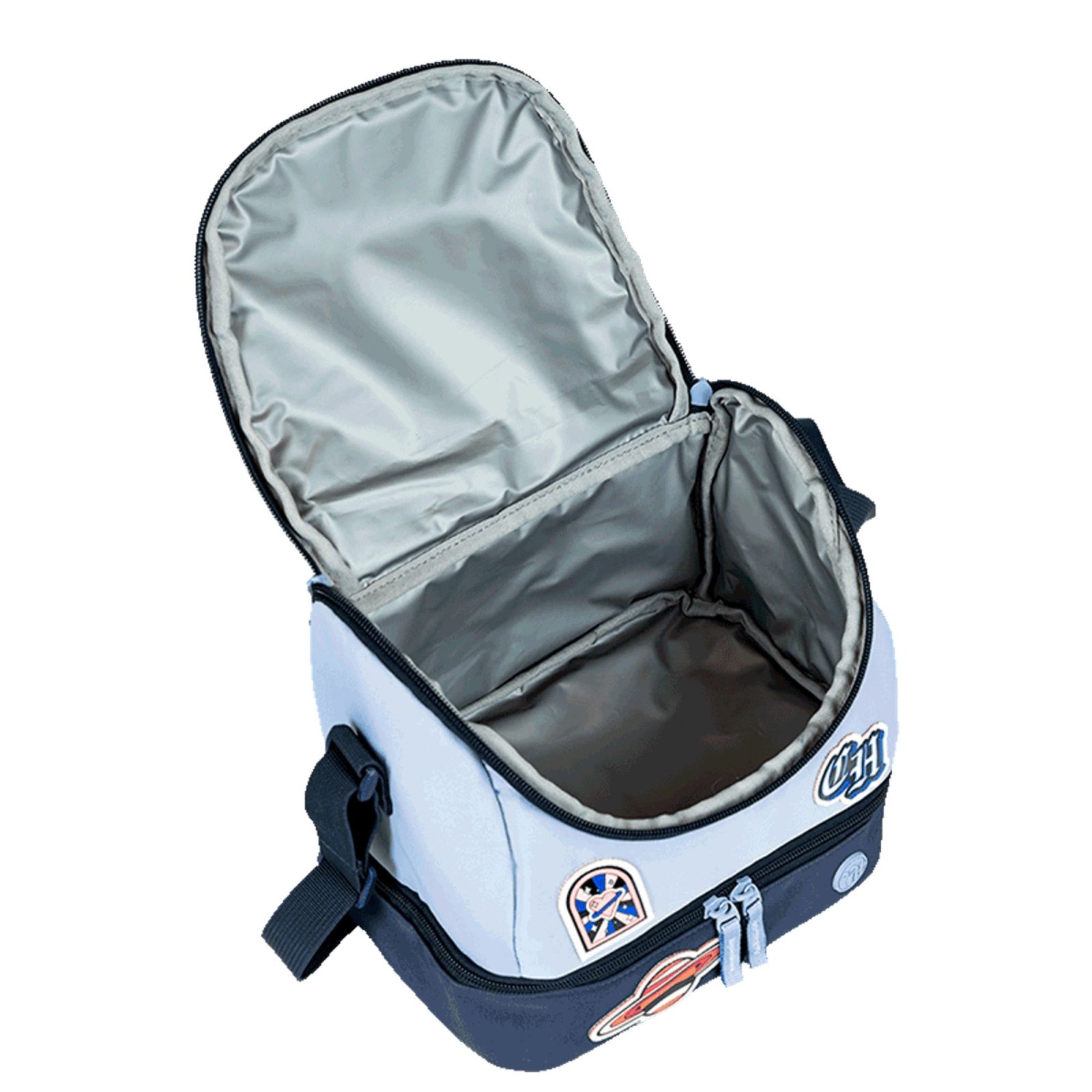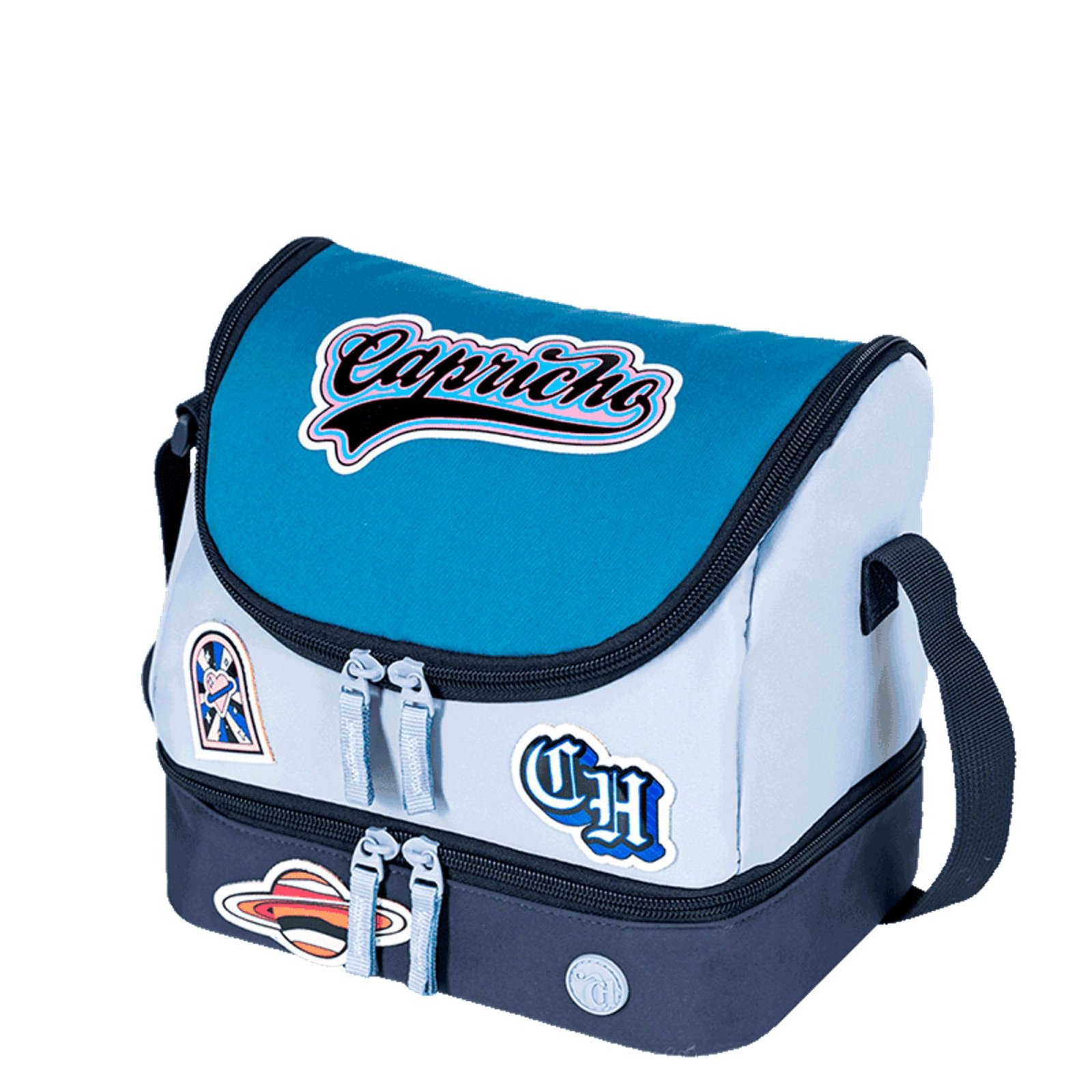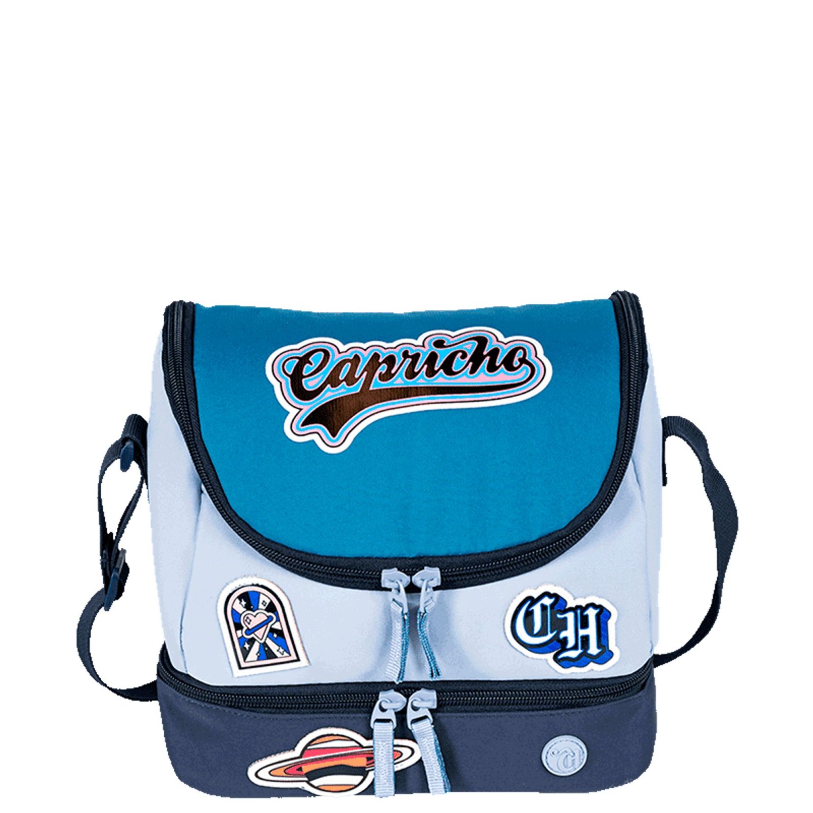 A Lancheira 2 Compartimentos Capricho Class Cosmic Patches Azul é perfeita para jovens que buscam praticidade e estilo para o dia a dia.