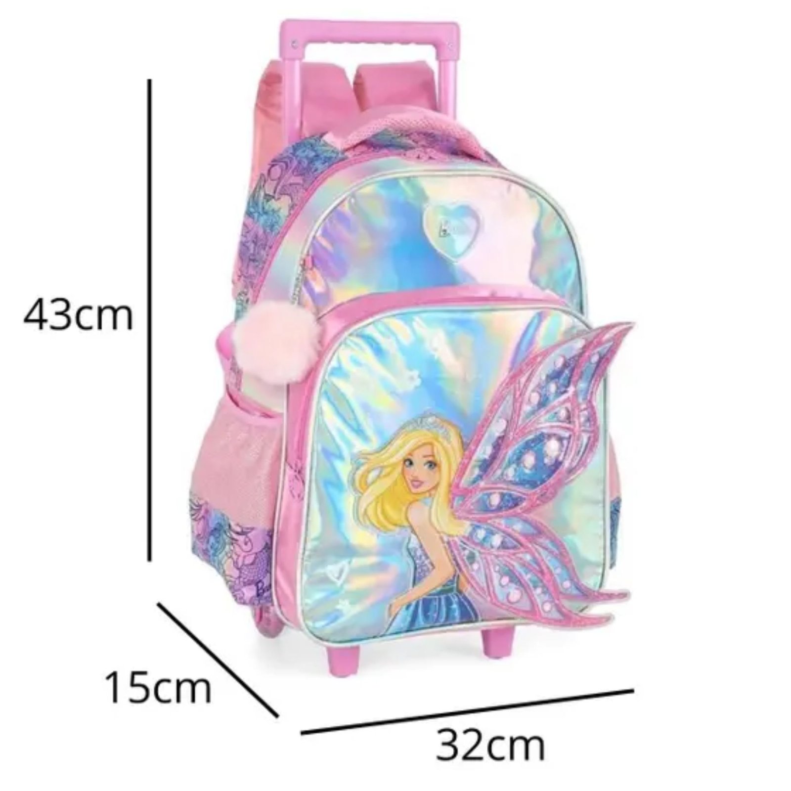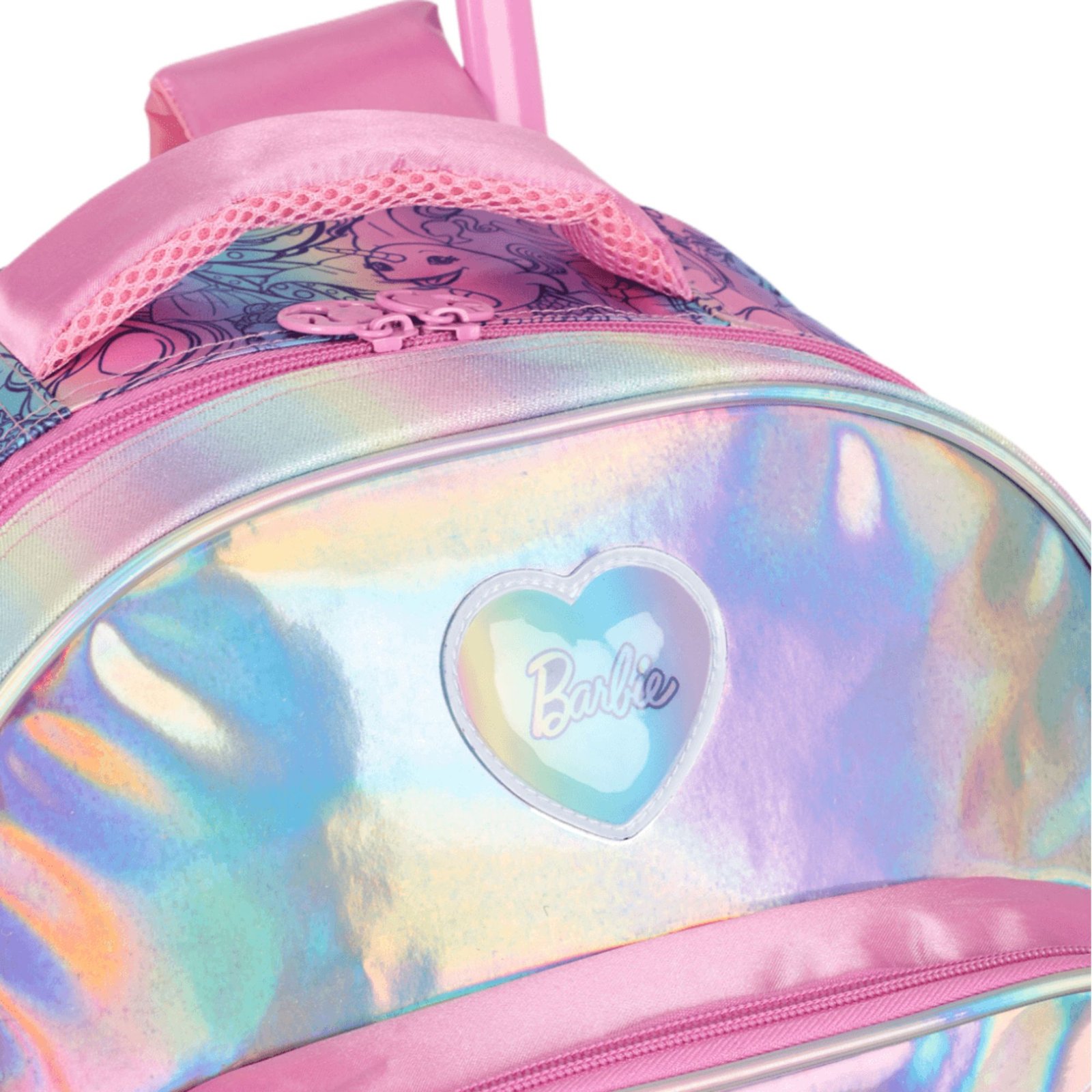 Com um design encantador em tons de Verde e estampa da Barbie, a mochila possui rodinhas resistentes e puxador retrátil, garantindo facilidade no transporte.