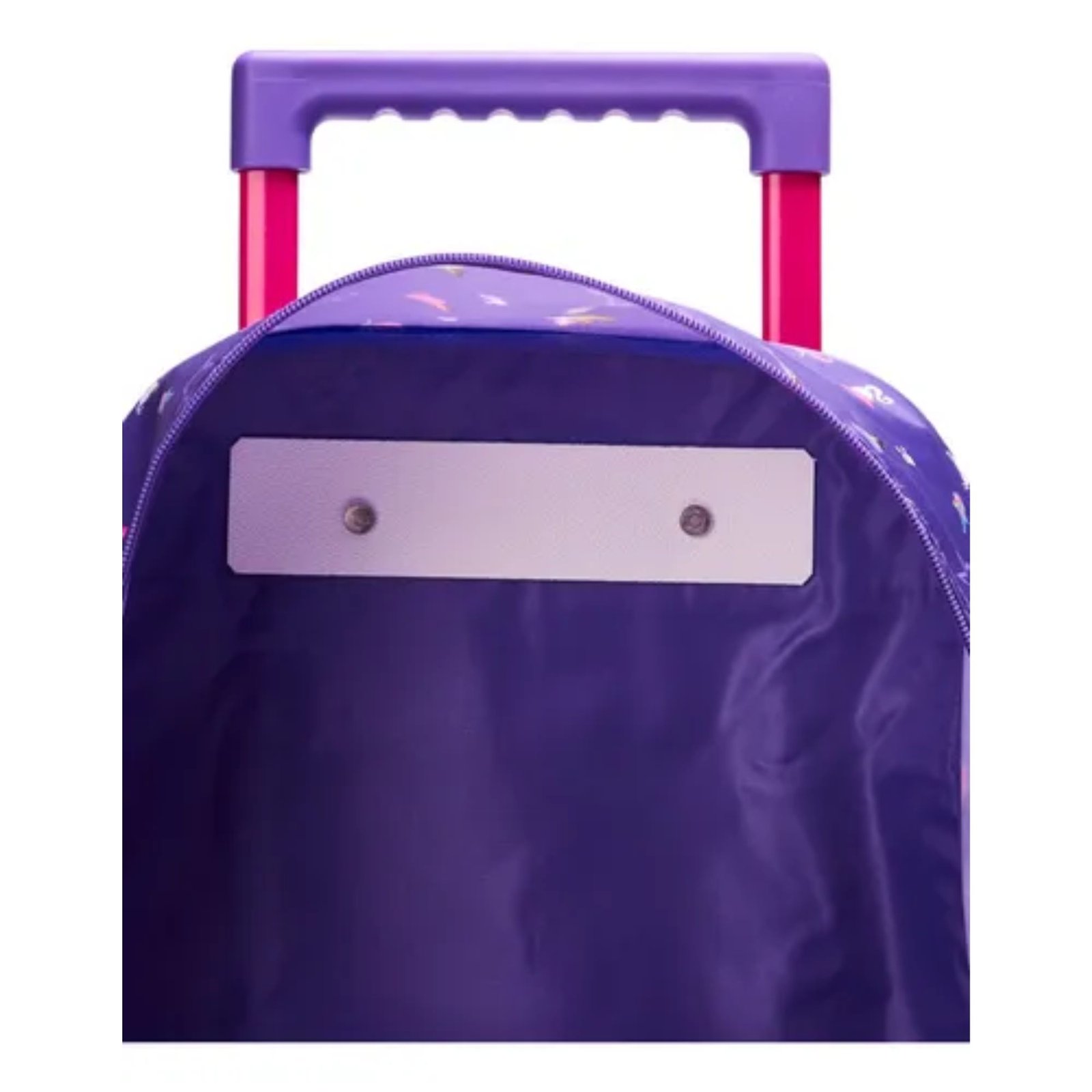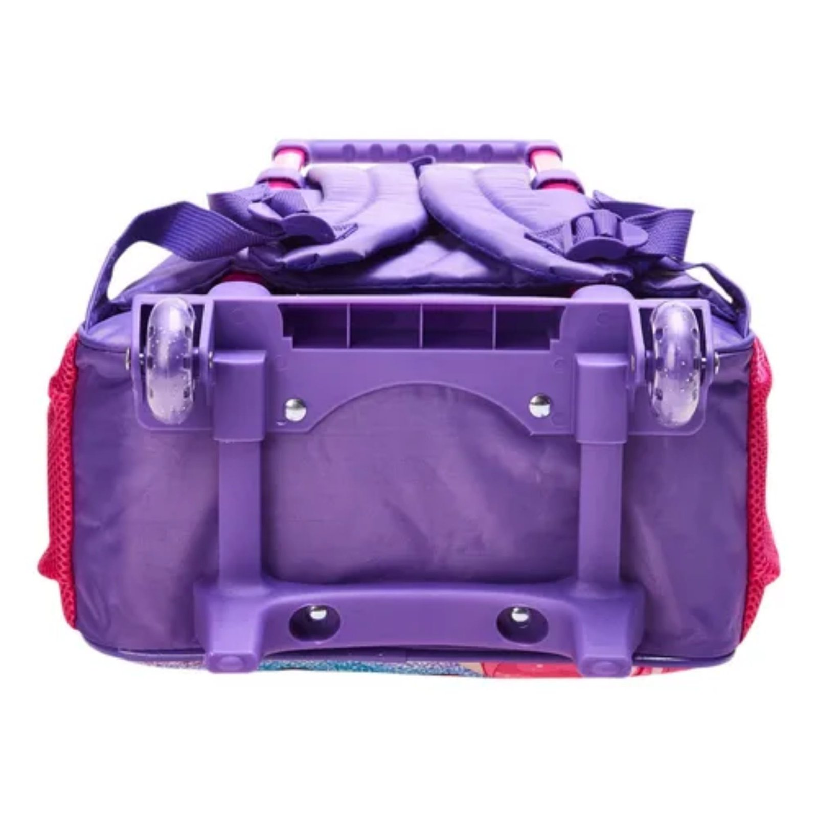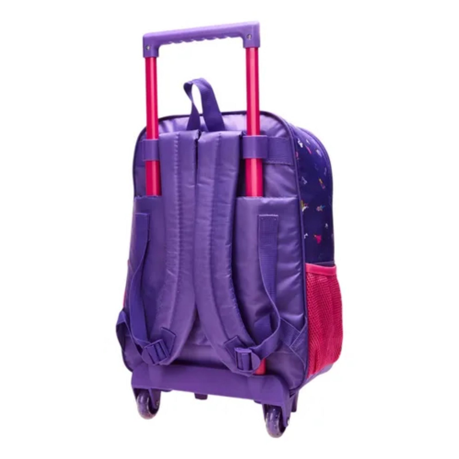 Possui compartimento espaçoso para livros e materiais escolares com bastante espaço, dois bolsos laterais para squeeze, alças e costas acolchoadas e ajustáveis, alça de mão e puxador na parte superior, 02 rodinhas e zíper metálicos. Confortável e resistente, é ideal para acompanhar as aventuras do dia a dia na escola!