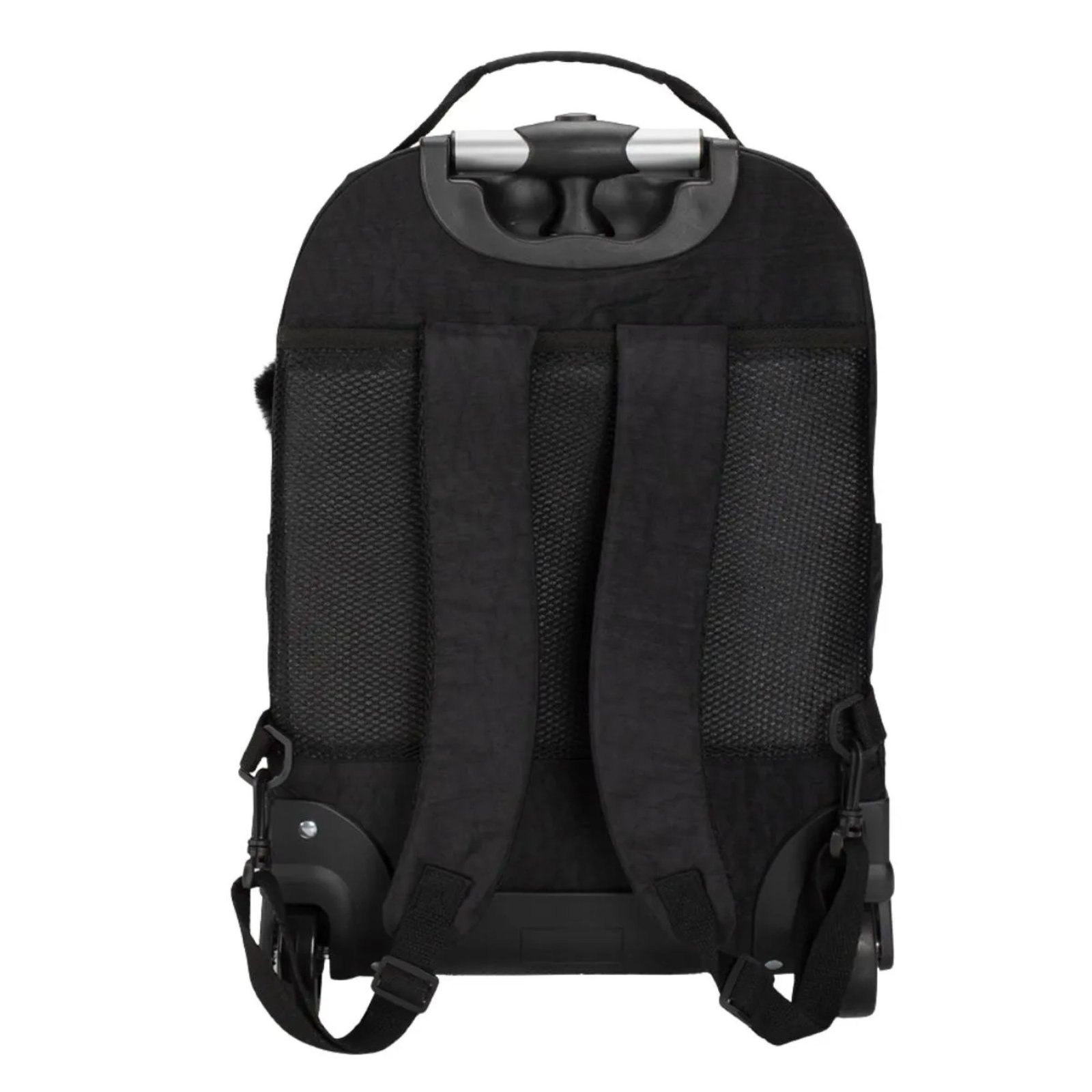 - Carrinho embutido com haste de alumínio: Facilita o transporte da mochila, evitando que a criança precise carregar peso nas costas. A base robusta reforçada em plástico com duas rodas garante maior durabilidade e segurança.
