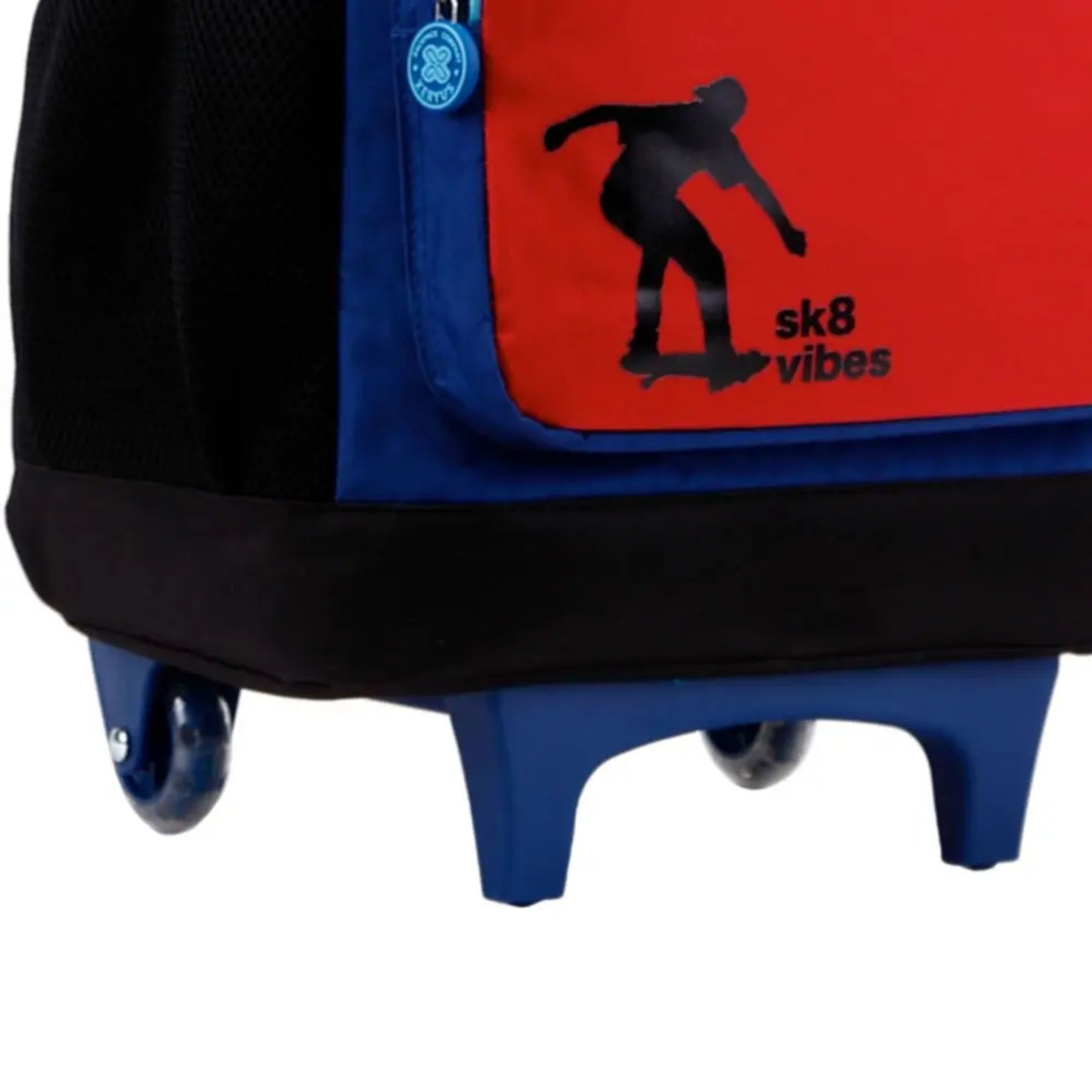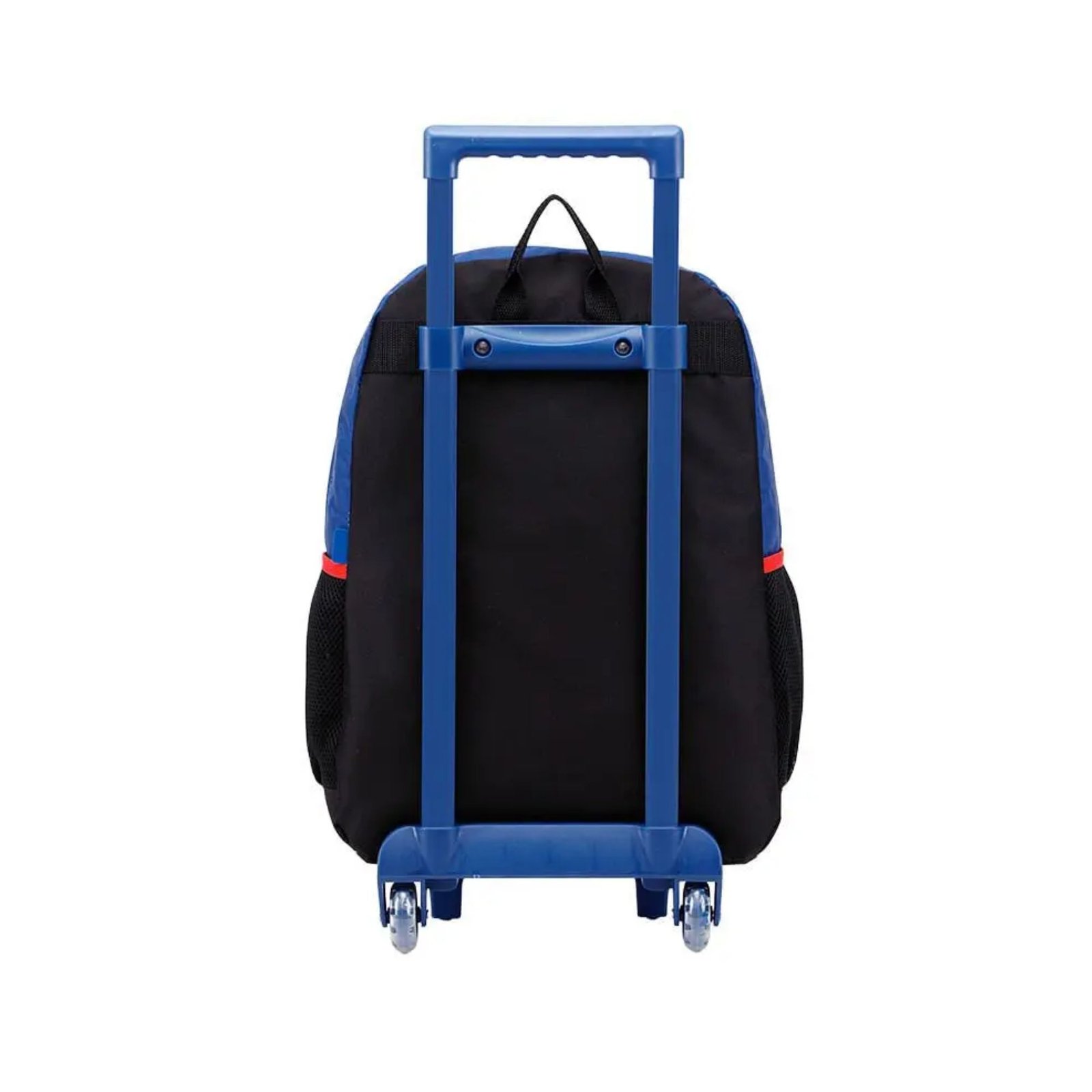 Com rodas produzida em poliéster resistente Possui 1 compartimento amplo com aba para proteger o ziper, 2 bolsos frontais, 2 bolsos laterais em mesh, Puxadores emborrachados personalizados Carrinho quadrado resistente