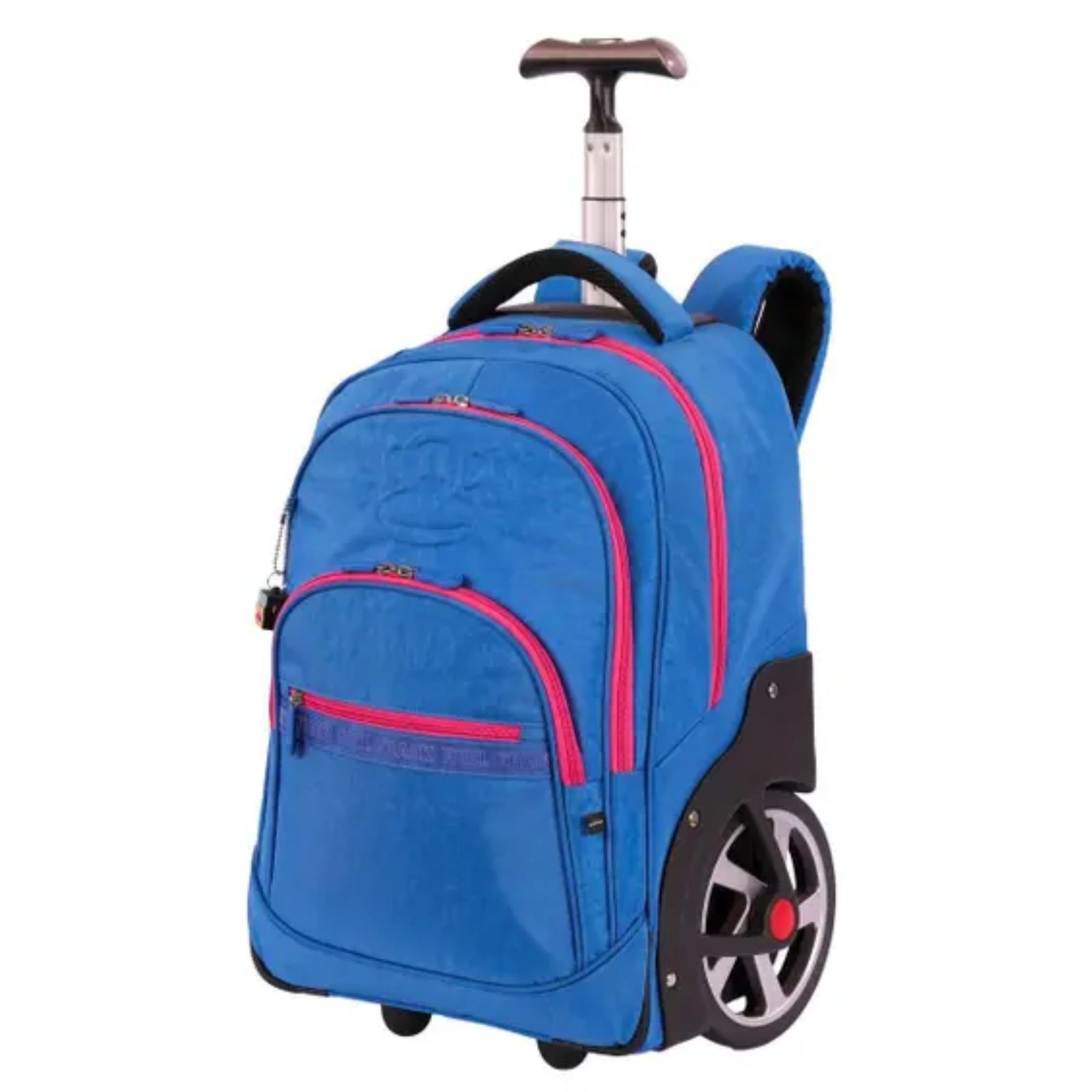 Possui um bolso frontal com zíper, perfeito para guardar itens de fácil acesso, como chaves, celular e documentos. Além disso, conta com um compartimento para notebook, garantindo segurança e proteção para o seu dispositivo. Seu carrinho embutido em alumínio é resistente e durável, proporcionando um deslizamento suave e sem esforço. Com isso, você não precisa se preocupar em carregar o peso da mochila nas costas, pois pode simplesmente empurrá-la com facilidade.
