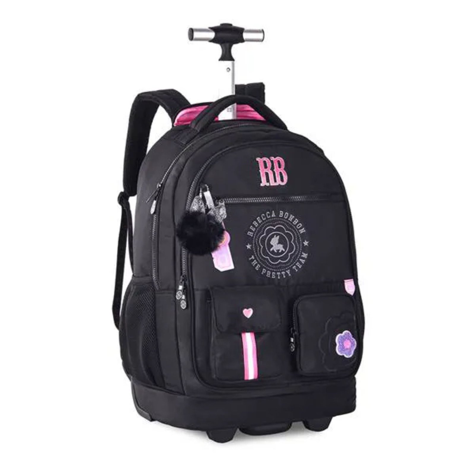 Carrinho com regulagem de altura e botão de travamento, fácil de manusear. Compartimento para notebook e tablet, garantindo proteção extra. Alças acolchoadas e ajustáveis para maior conforto ao transportar. Amplo espaço interno com divisórias, ideal para organizar os materiais escolares. Design encantador que combina estilo e funcionalidade,